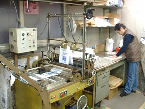この印刷ローラーのインク坪の色合い調整が職人芸の見せどころです。